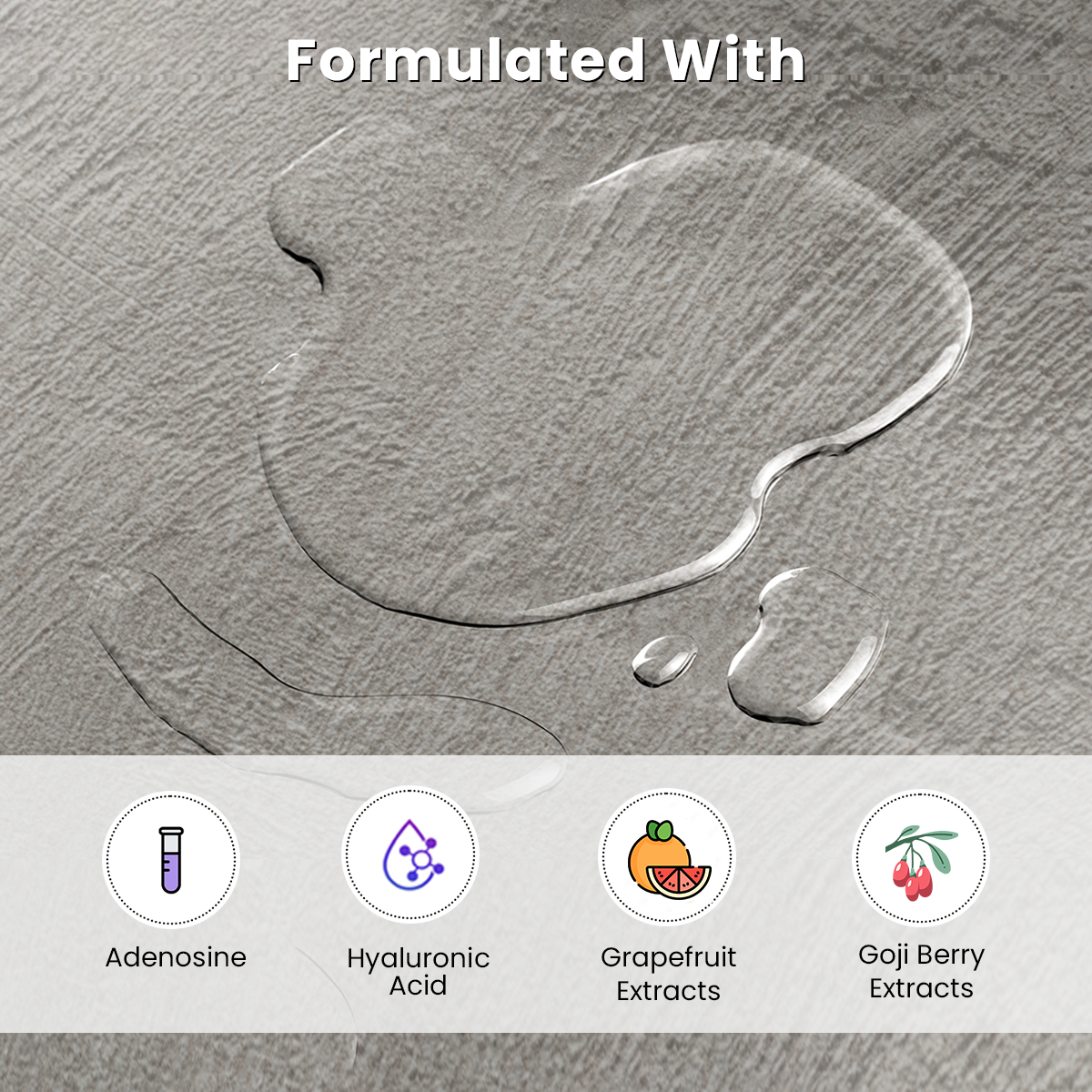 • Adenosine, a yeast-derived ingredient, energizes the skin’s surface, making it look smoother and wrinkle-free
